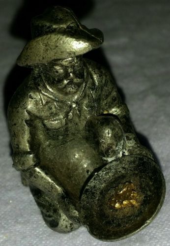 Title (ebay affiliate link): VINTAGE SOLID PEWTER GOLD MINER FIGURE WITH 18KT GOLD NUGGET IN HIS PAN
