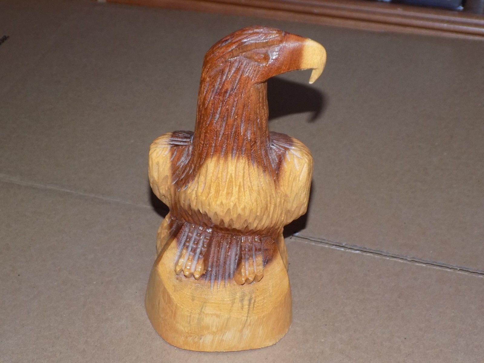 Title (ebay affiliate link): Vintage American Bald Eagle Hand Carved Solid Wood Two Tone Sculpture