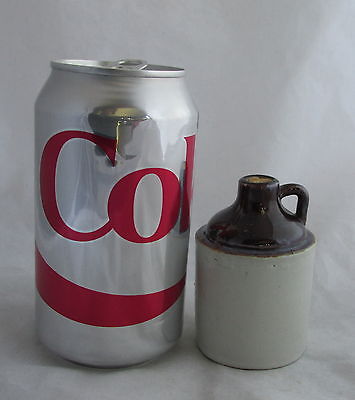Antique Minature Stoneware Pottery Crock Brown&Cream Whiskey Jug
