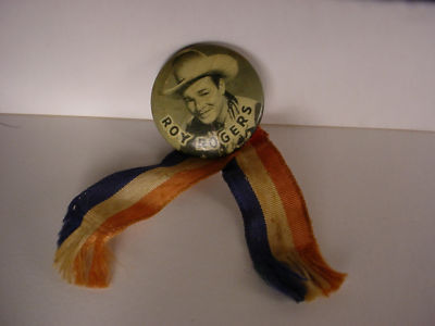 Roy Rogers metal pin with red, white and blue ribbon