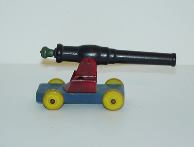 Vintage Wooden Toy Cannon W/Spring in Barrel 5 1/2"