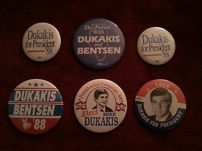 Michael Dukakis 1988 Campaign Pins Buttons, Lot of 6