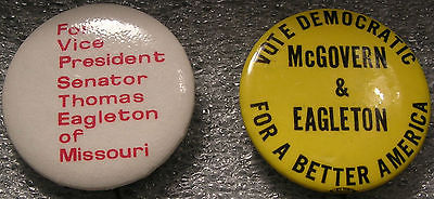 Title (ebay affiliate link): Two Political Pins/George McGovern/Thomas Eagleton/Democrat/President/Missouri