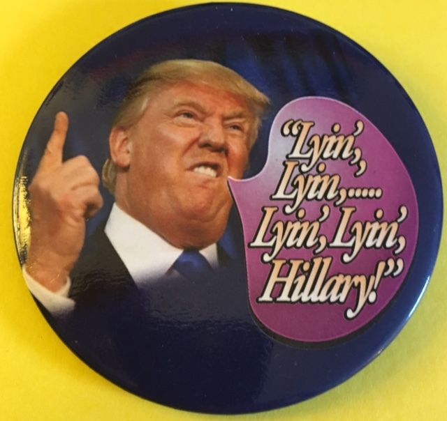 Title (ebay affiliate link): Trump "Lyin', Lyin',... Lyin' Hillary" Political 3 Inch Pin Pinback Button