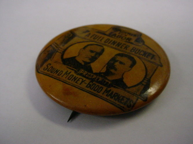 Title (ebay affiliate link): 1900 McKinley Roosevelt Full Dinner Bucket Campaign Election Button Pin ORANGE