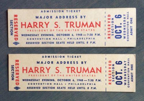 Title (ebay affiliate link): Pair Of Tickets To See President Truman Give Campaign Speech In Philadelphia