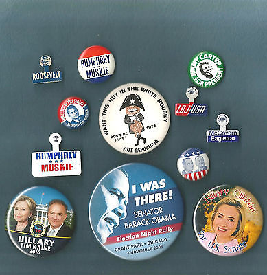 Mix of 12- Presidential Democratic Political Campaign Buttons 2016- 1932 Nice