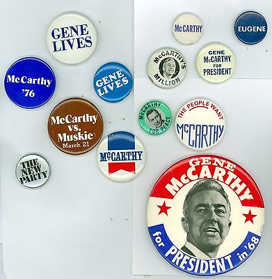 Title (ebay affiliate link): 12 Vintage 1968 70s Senator Eugene McCarthy Political President Pinback Buttons