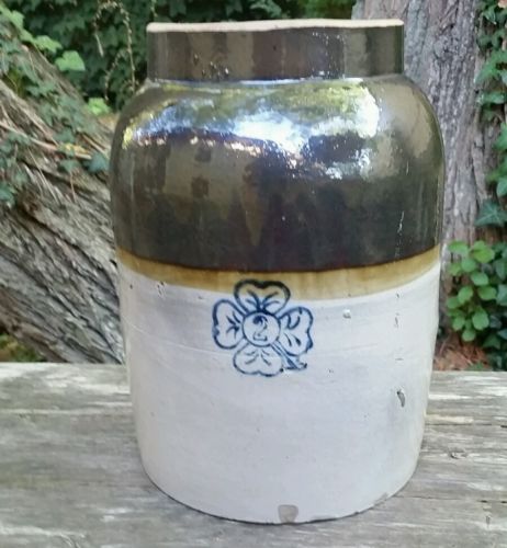 Miller Pottery Alabama Crock 2 Gal Cobalt Cloverleaf brown tan