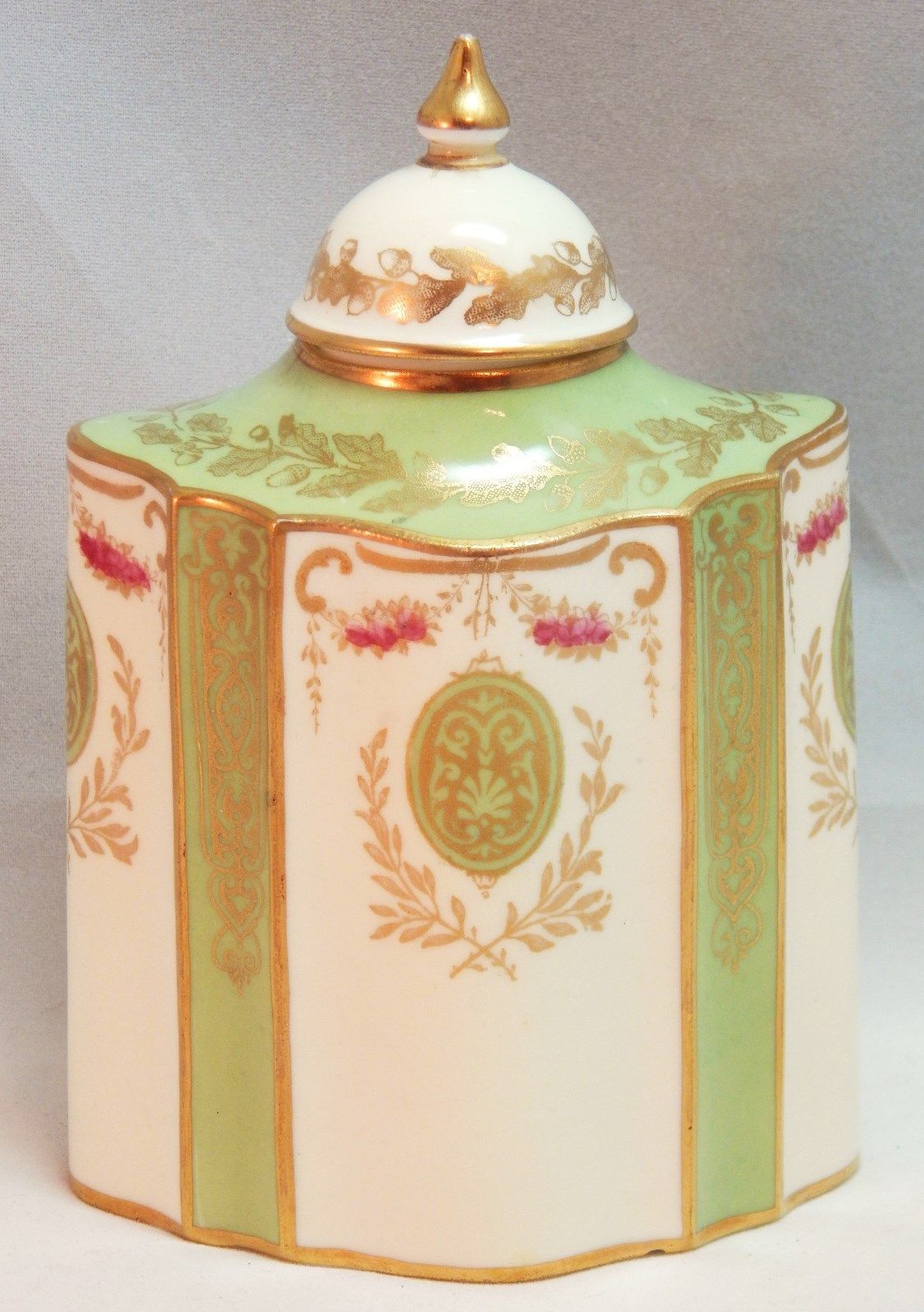 Title (ebay affiliate link): Rare Antique Josiah Wedgwood Bone China Dresser Jar Gold Oak Leaves Acorns