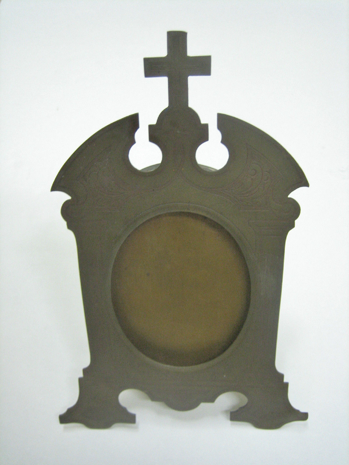 ANTIQUE RELIGIOUS FRENCH BRONZE/BRASS ENGRAVED FRAME - DEPOSE F.W.