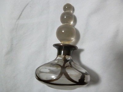 Antique Art Nouveau Blown Glass Perfume Bottle with Silver Overlay