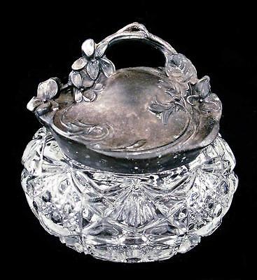 ANTIQUE ART NOUVEAU PEWTER AND CRYSTAL GLASS LADIES POWDER JAR
