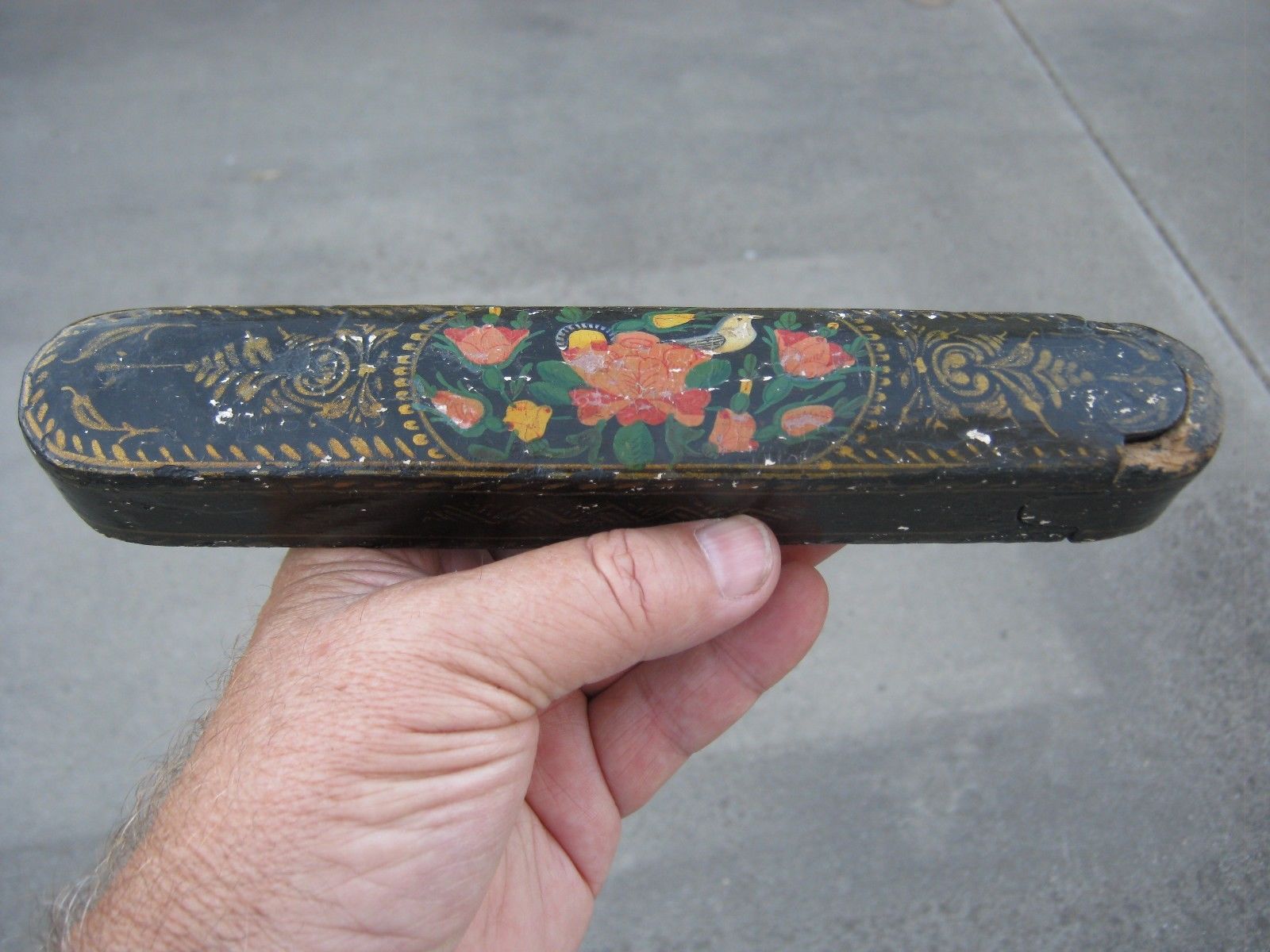 Antique Painted Paper Mache Pencil Box - Folk Art