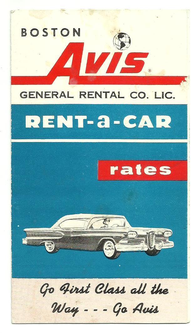 Title (ebay affiliate link): Boston Avis Rent A Car Rates Brochure w/ 1958 Edsel On Cover August 1957 Date