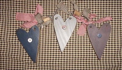 Title (ebay affiliate link): primitive home hearth wood heart swag with checkered primitive cloth and button