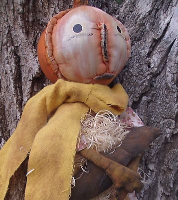 Primitive Folk Art~^HaLLoWeeN PuMPkiN Head DoLL /CRoW~OOAK~direct/Kansas Artist
