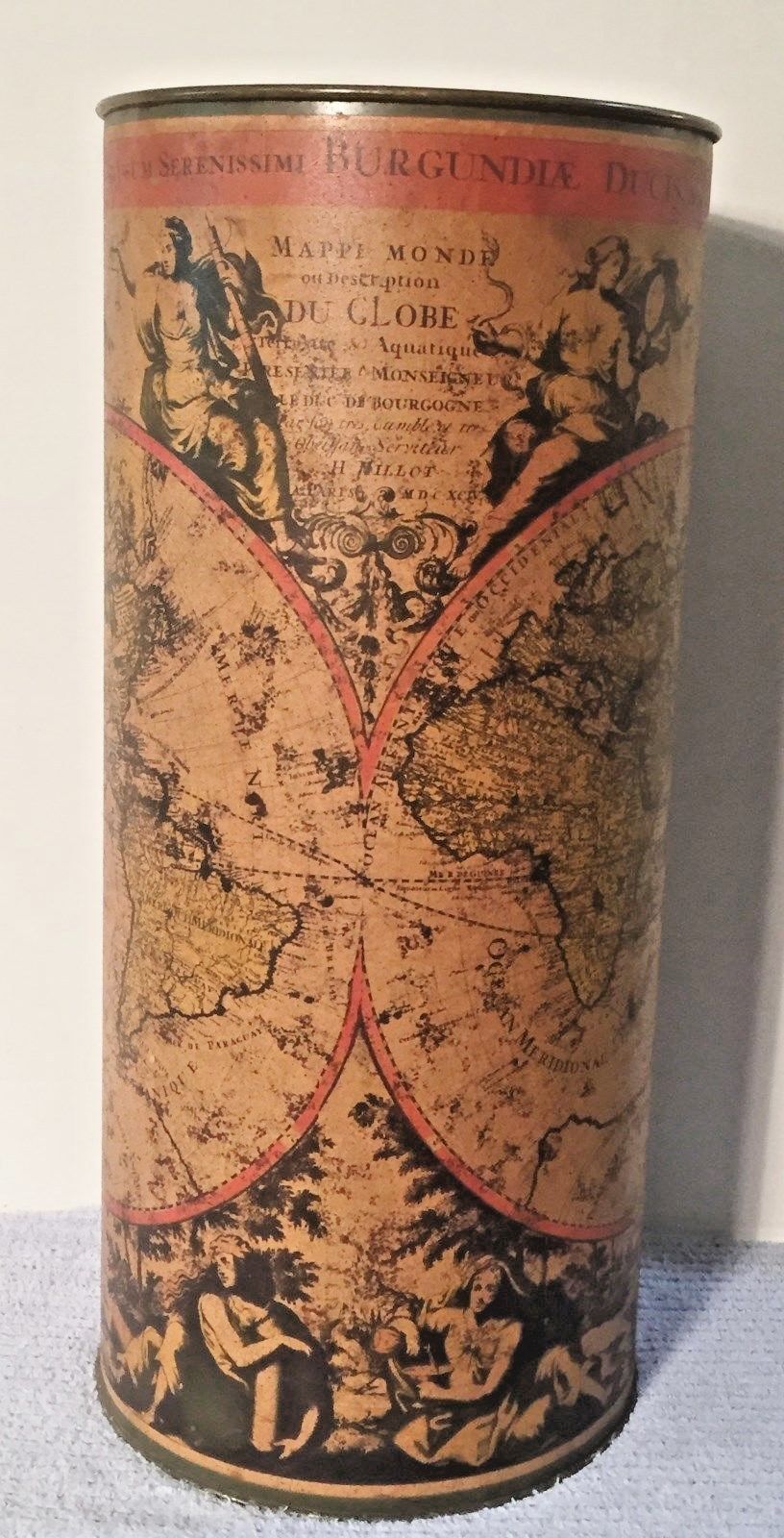 Vintage Metal Umbrella Stand / Old World Map