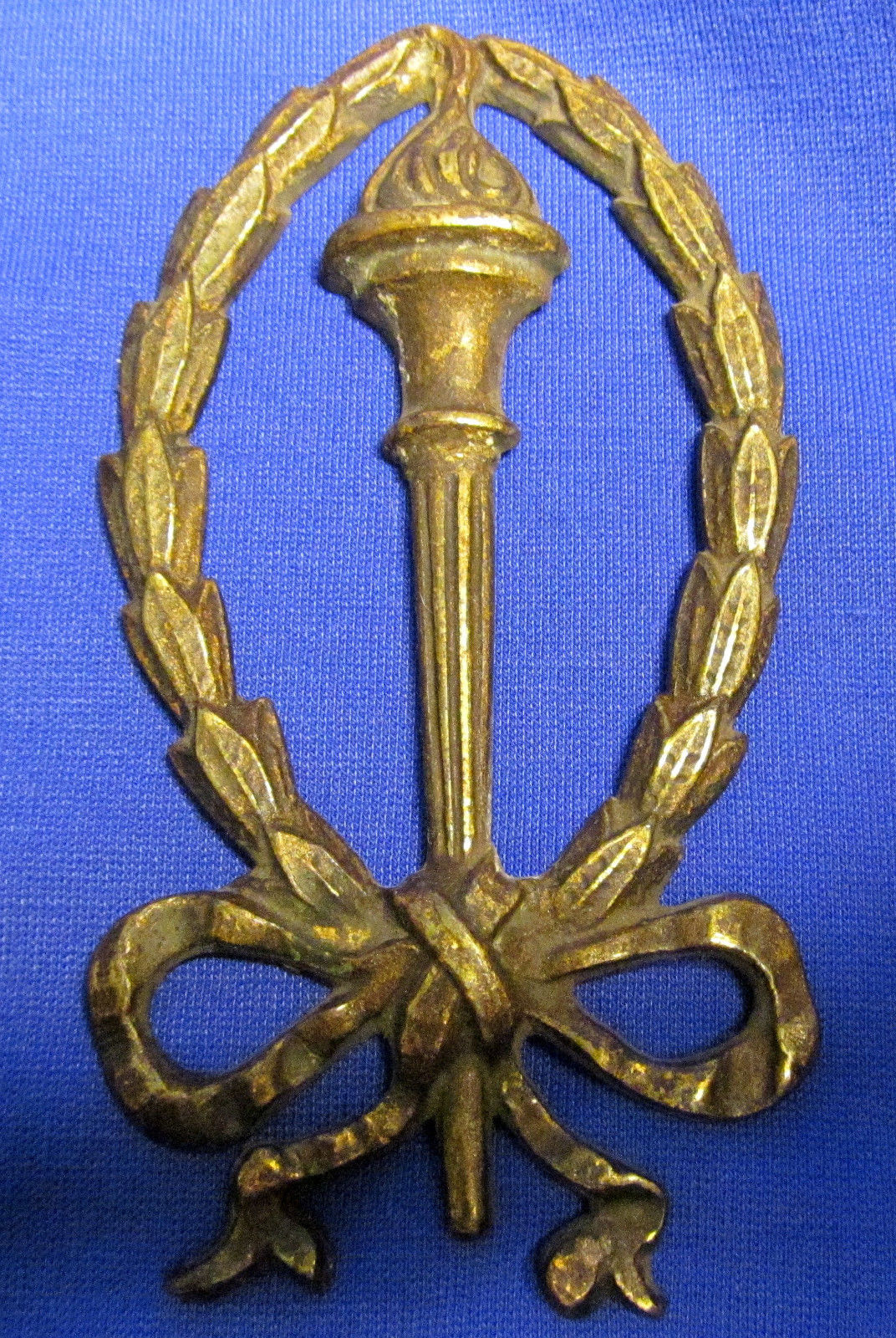 Vintage / Antique Bronze - Brass Furniture Plaque? Torch with Ribbon in Wreath