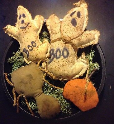 PRIMITIVE HALLOWEEN PUMPKIN GHOST SPIDER ORNIES BOWL FILLER DECOR