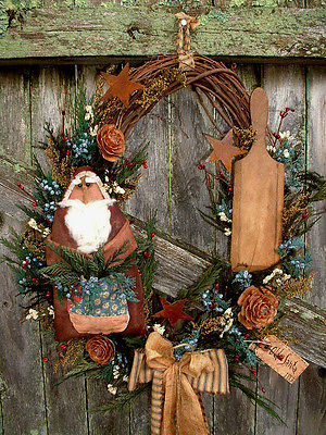 Title (ebay affiliate link): PRIMITIVE LARGE OVAL WINTER CHRISTMAS WREATH~OLDE SANTA~VINTAGE BUTTER PADDLE