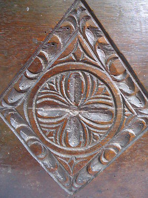 17TH CENTURY CARVED OAK DIAMOND PANEL