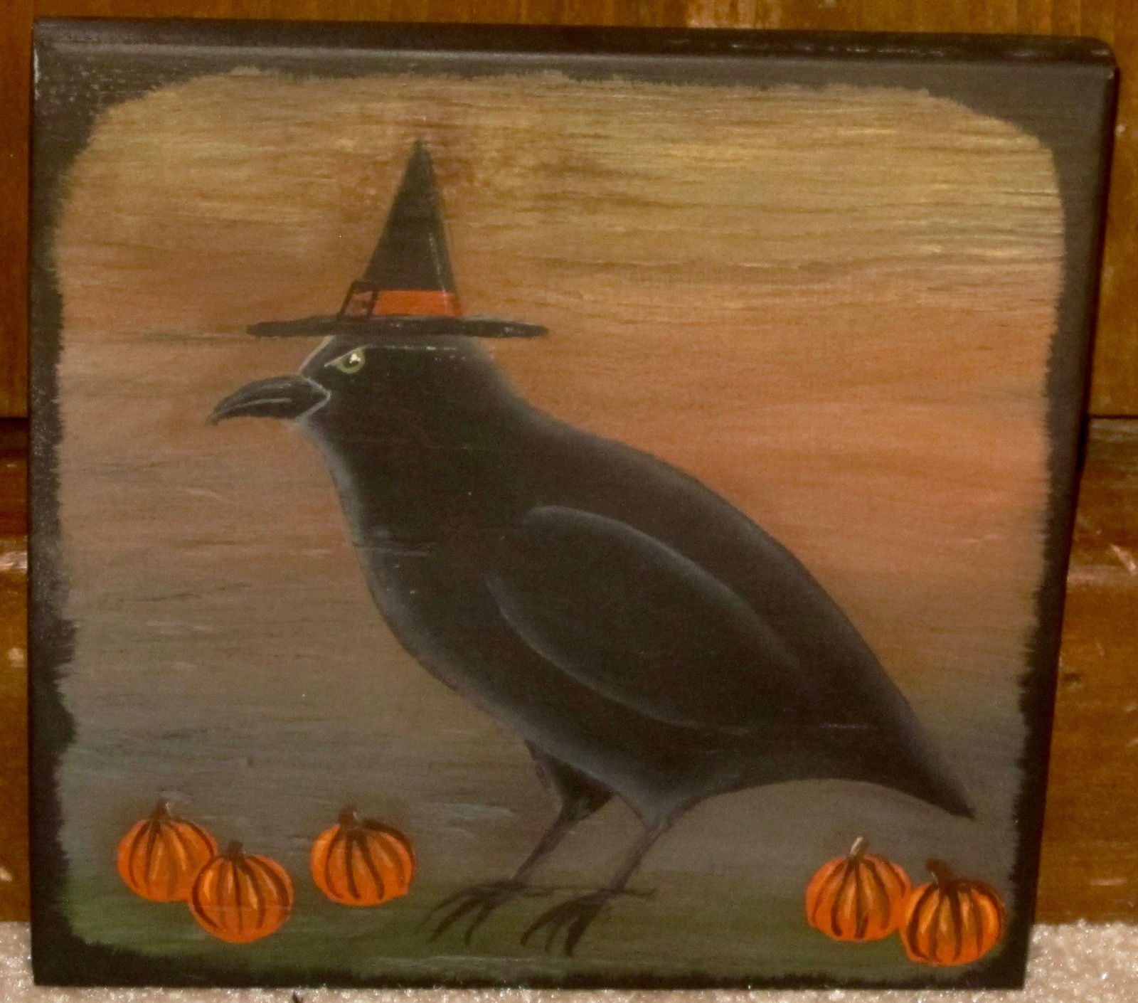 Title (ebay affiliate link): *~*PRIMITIVE*~* HP FOLK ART PRIM CROW WITCH *~* HALLOWEEN *~* BOARD
