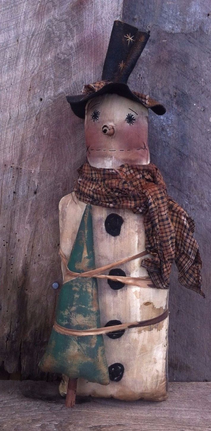 Title (ebay affiliate link): Primitive OOAK Snowman stump Sitter 24" Large doll with Christmas tree GRungy