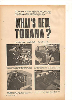 ORIGINAL VINTAGE 1969 HB HOLDEN TORANA AUSTRALIAN 2 PAGE FEATURE