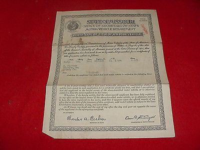 Old Missouri car title for 1931 Dodge 1/2 ton pickup dated 1931