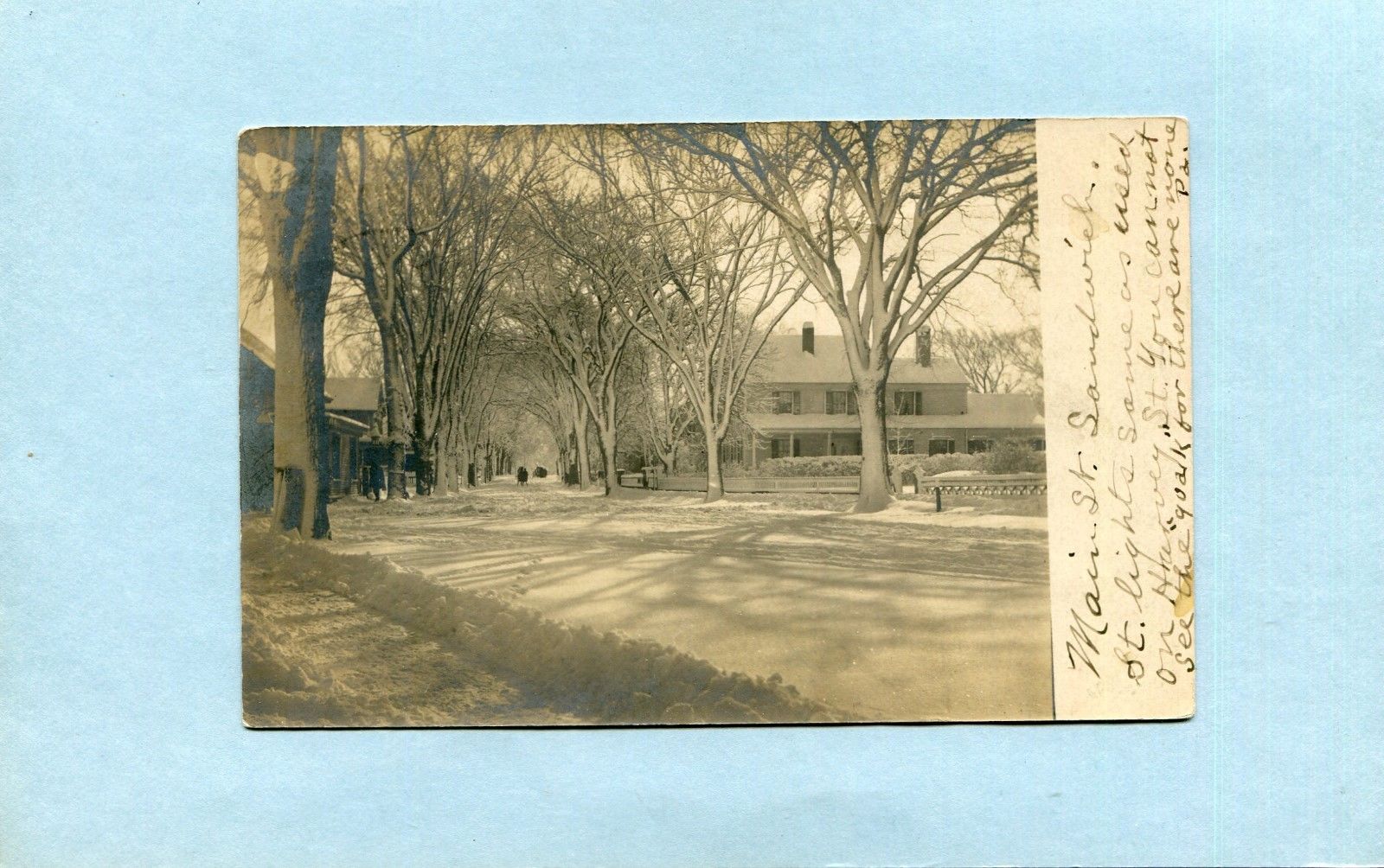 SANDWICH, MA. VINTAGE REAL PHOTO POSTCARD~NICE VIEW OF A WINTERY MAIN STREET
