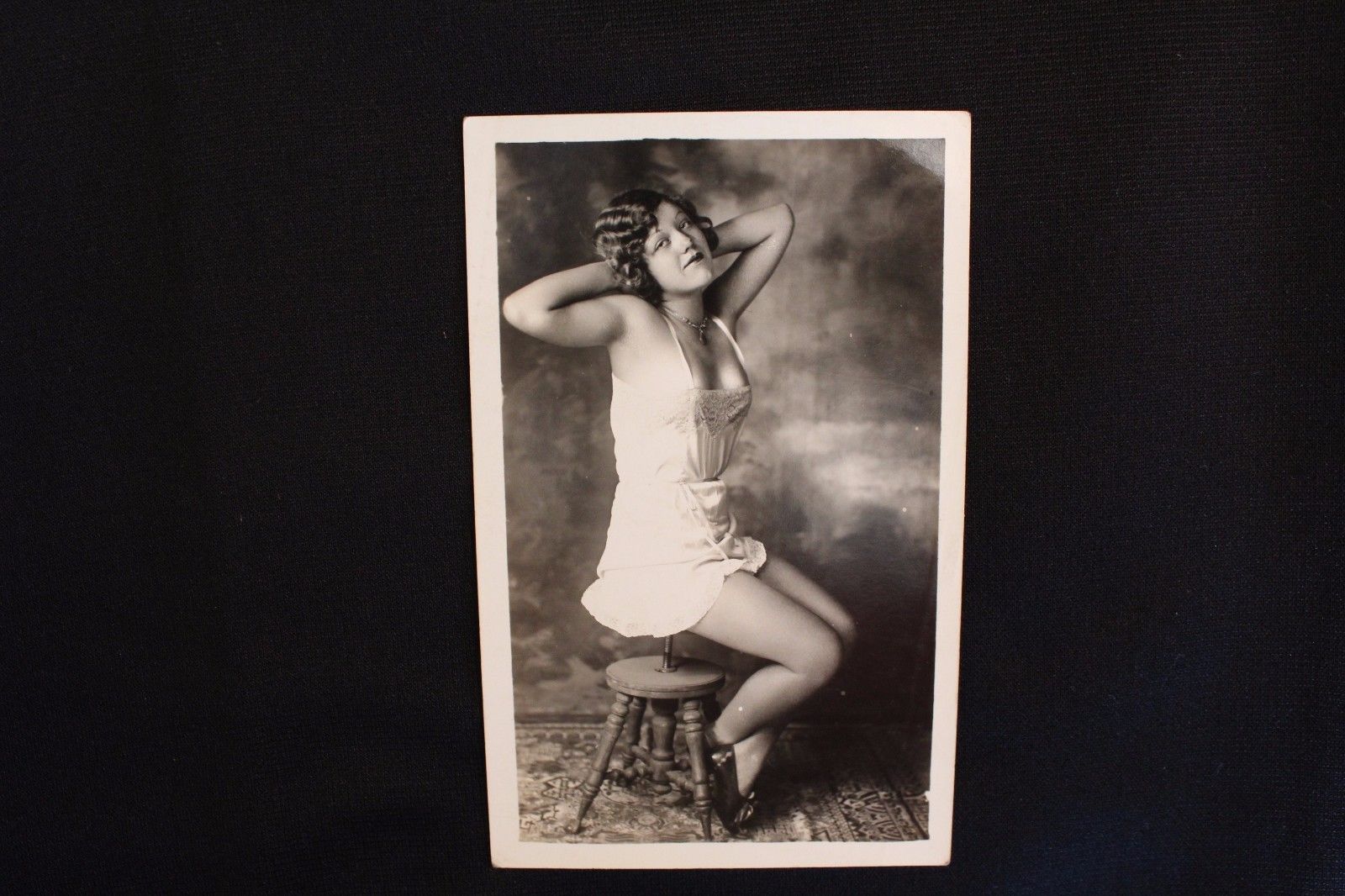 Title (ebay affiliate link): UNUSED 1920'S RISQUE POSTCARD-TEASING SEDUCTIVE FLAPPER IN LINGERIE