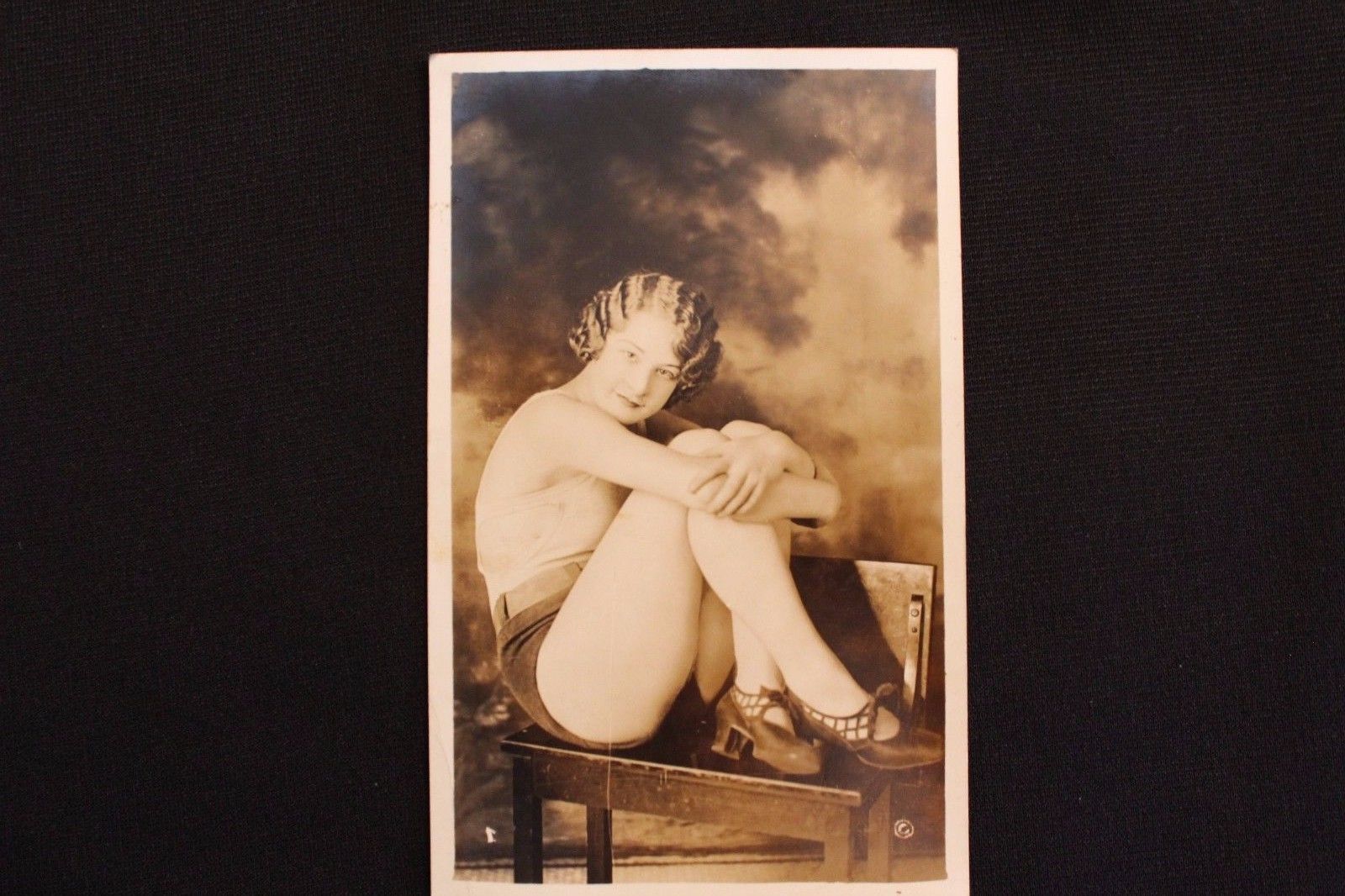 Title (ebay affiliate link): ORIGINAL 1920'S RISQUE REAL PHOTO POSTCARD RPPC-SEXY LEGGY FLAPPER IN SWIMSUIT
