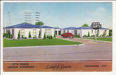 Title (ebay affiliate link): Roadside America Hwy Route 66 & 77 Lincoln Courts Motel Oklahoma City Postcard