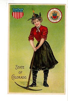 AD529 Postcard Samuel Langdorf State Girl Colorado girl in Mining outfit