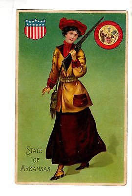 Title (ebay affiliate link): AD528 Postcard Samuel Langdorf State Girl Arkansas lady with Gun hunting outfit