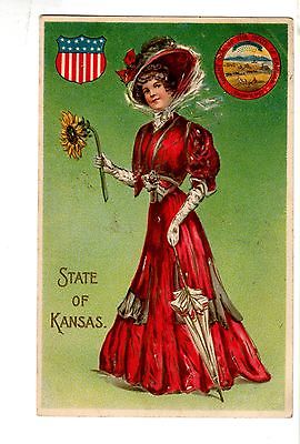 AD526 Postcard Samuel Langdorf State Girl Kansas girl with Sunflower