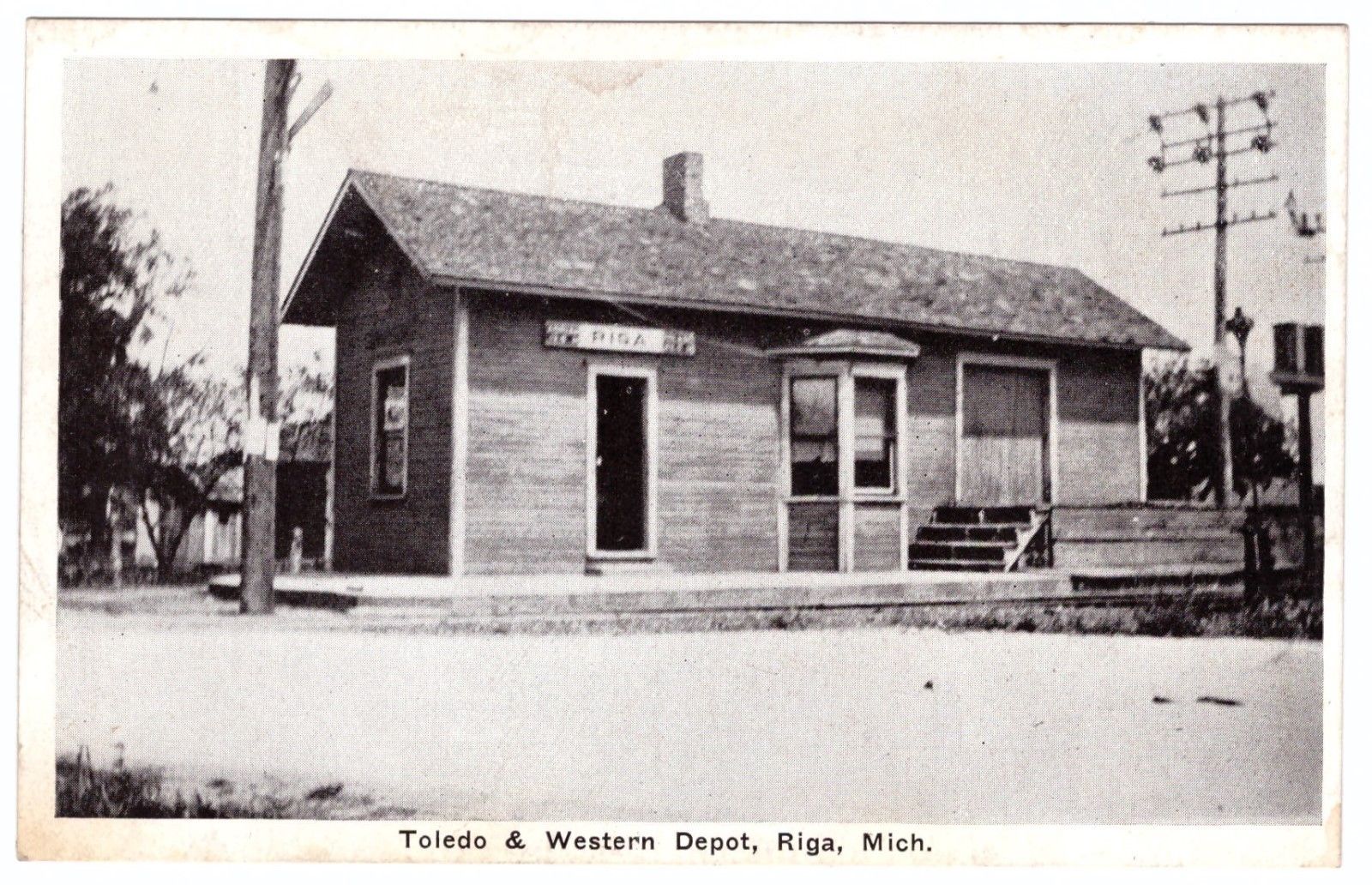 T&W Toledo Western RR Depot Railroad Riga Mi Michigan Postcard Vintage O