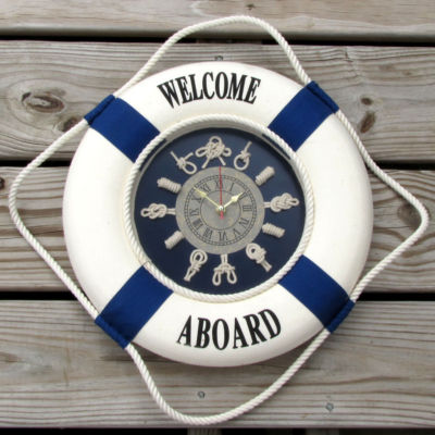 Title (ebay affiliate link): WELCOME ABOARD life ring & anchor CLOCK Nautical Decor