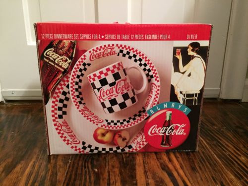 Title (ebay affiliate link): 1996 Coca Cola Gibson 12 Piece Dinnerware Set Never Used/ In Original Box
