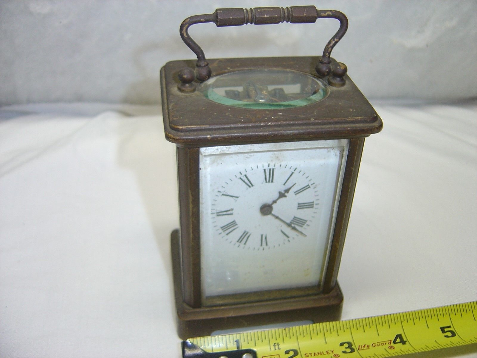 Title (ebay affiliate link): Antique Small French Carriage clock, project clock, parts, beveled glass