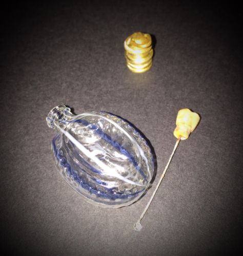 Vintage Glass Perfume Flask Chatelaine, Metal Dauber