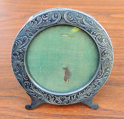Antique Round Art Nouveau/ Deco Floral SILVER Photo Picture Frame
