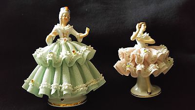 LOT OF 2 DRESDEN FIGURINES PORCELAIN WEST GERMANY CERAMIC FIGURINES