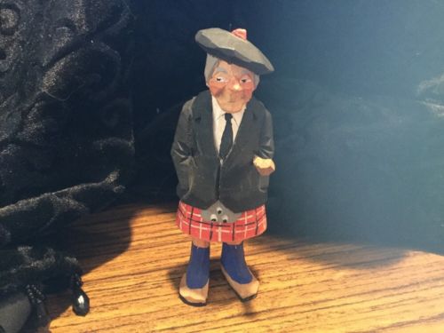 Vintage Wooden Hand Carved & Painted Scottish Figure Man Folk Art