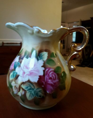 Antique/Vintage Porcelain Pitcher w/Pink Roses Gold Gild #T-1153