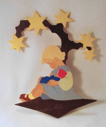VINTAGE HELLERKUNST GERMAN 1960S FOLK ART WOODEN FIGURE**GIRL UNDER STARS**WOW!