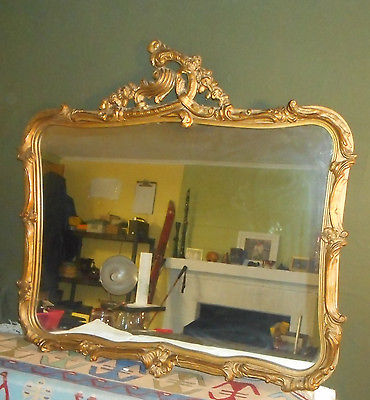 Antique Vintage Art Deco Gesso Over Wood Gold Gilt Wall Mirror