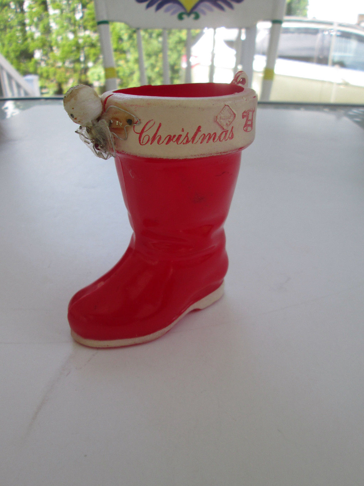 Title (ebay affiliate link): Rosbro Vtg Santa Claus Boot Christmas Candy Container w Spun Cotton Angel