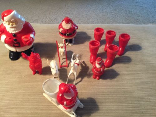 Title (ebay affiliate link): 13 Vintage Celluloid Santa Christmas Boot Reindeer Collection